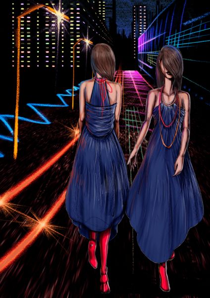 Die blaue Stunde bricht herein, wenn die letzten Lichtstrahlen hinter dem Horizont am Abendhimmel reflektiert werden und das künstliche Licht der Straße die Show eröffnet. Das Leben der Stadt wird so lebendig inszeniert, wie es der Tag nie zu schaffen vermag. In den unterschiedlichsten Farben locken die illuminierten Bordsteine, Hauswände und die verwirrenden Reflektionen auf dem Asphalt in das kochende Nachtleben der Großstadt.
